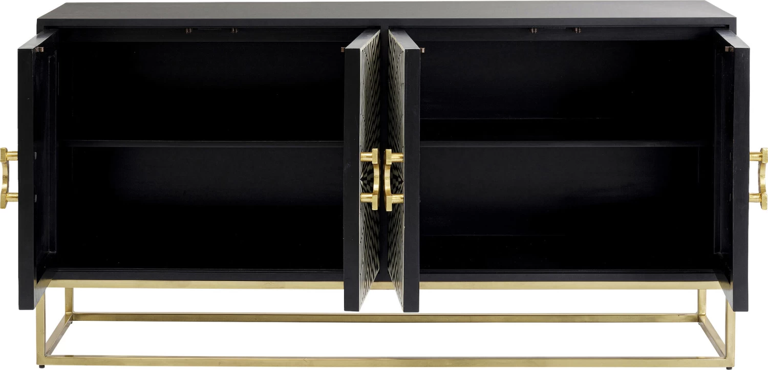 - Handgefertigtes Sideboard im luxuriösen Zebra-Look mit Gestell und runden Griffen, die mit Messing veredelt sind. Jedes Stück ein Unikat