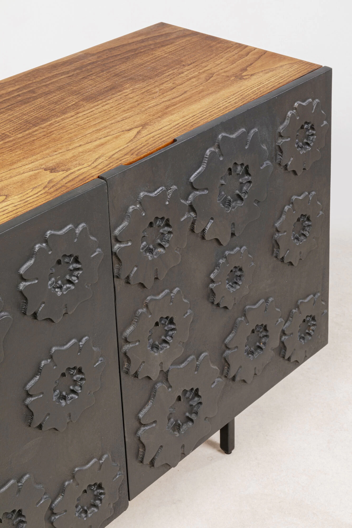 - Sideboard in Schwarz und Braun aus Massivholz, 75 x 160 x 38 Zentimeter (H/B/T)