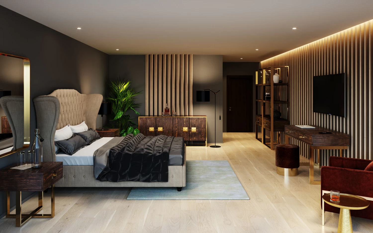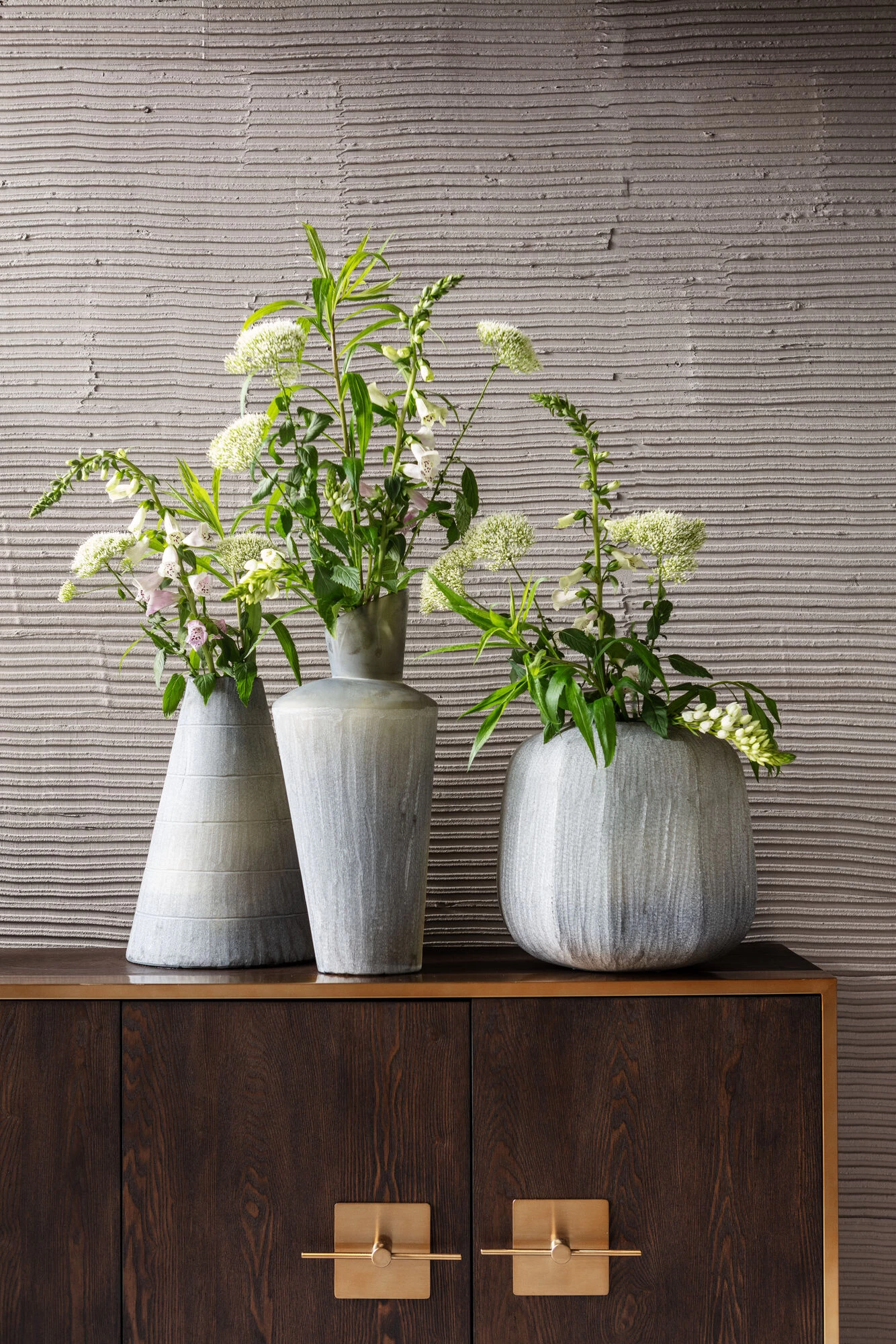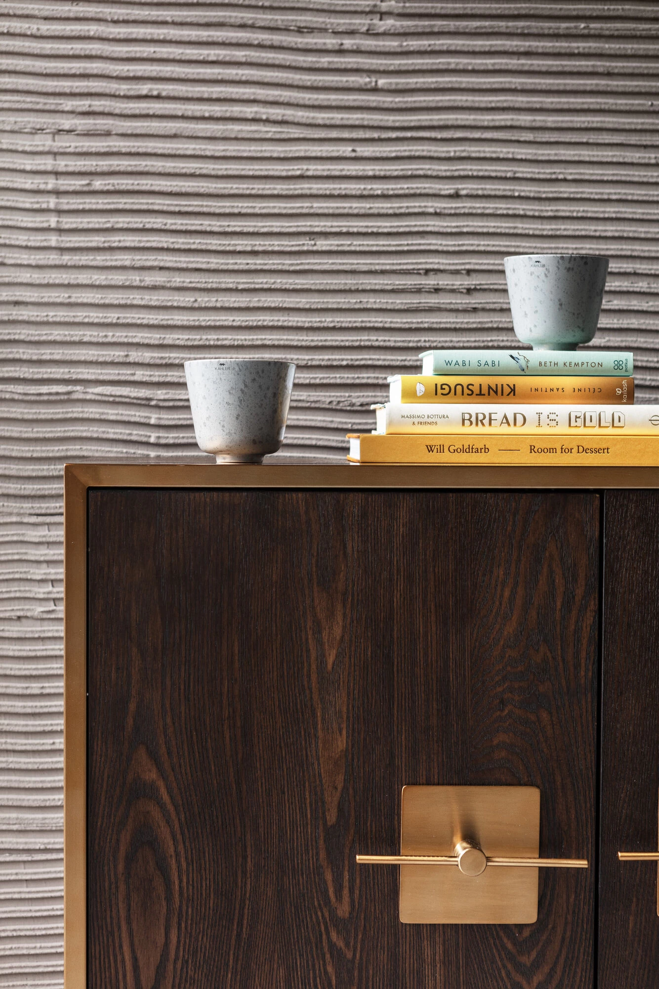 - Der harmonische Mix aus Holz und Metall steht auch vor gemusterten Tapeten gut