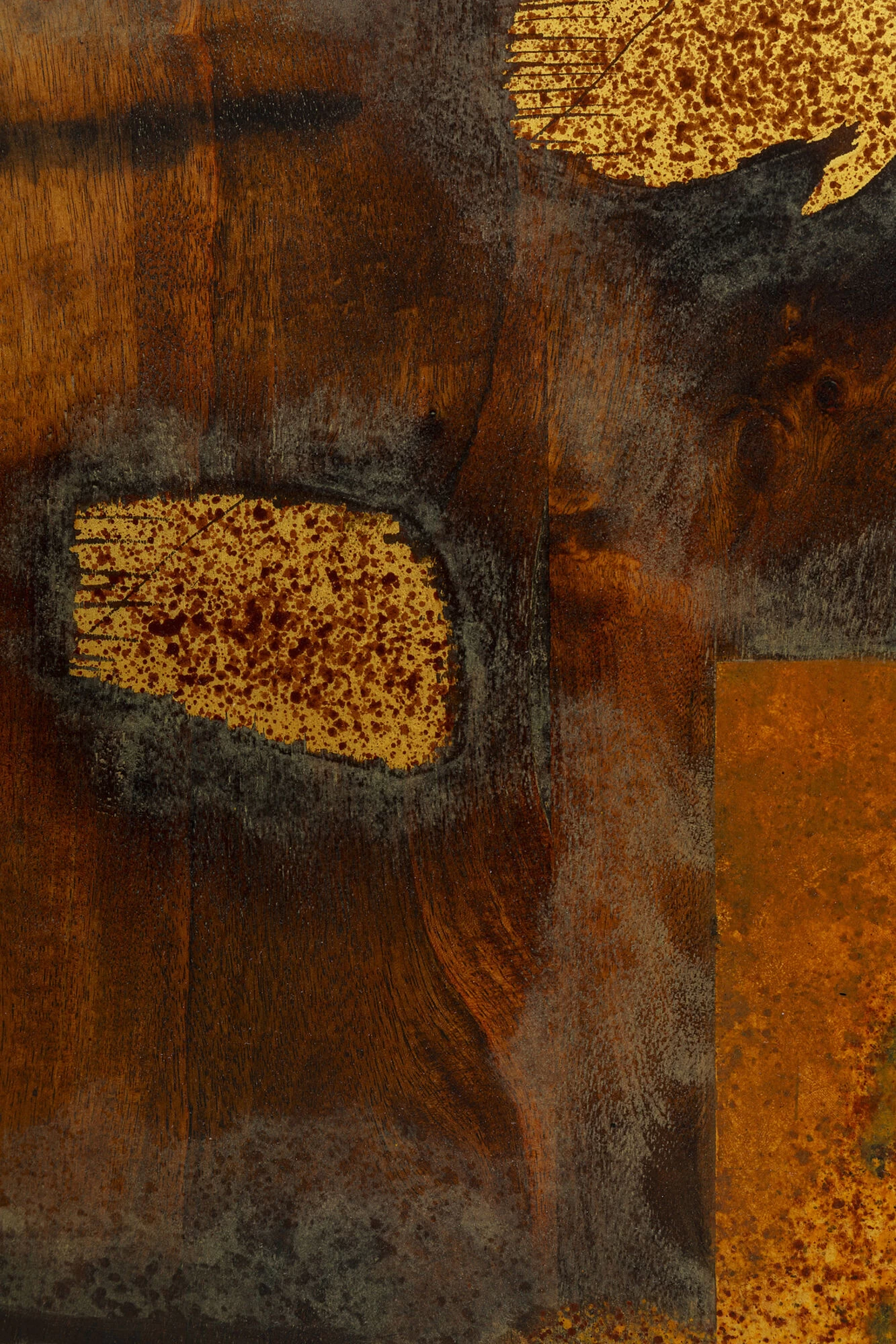- Metall-Korpus mit Holztüren, die einen spannenden Farbverlauf im Oxy-Look zeigen