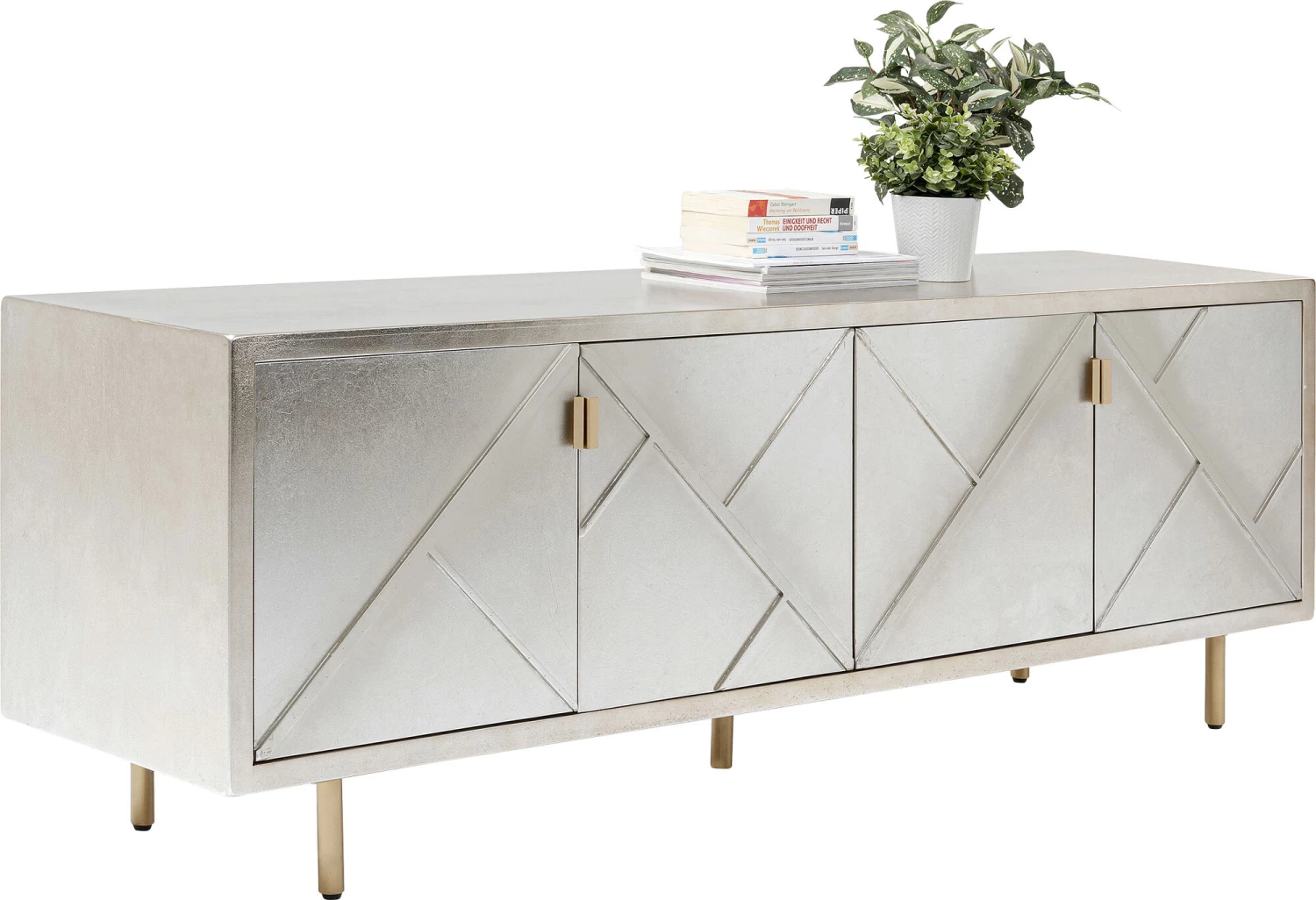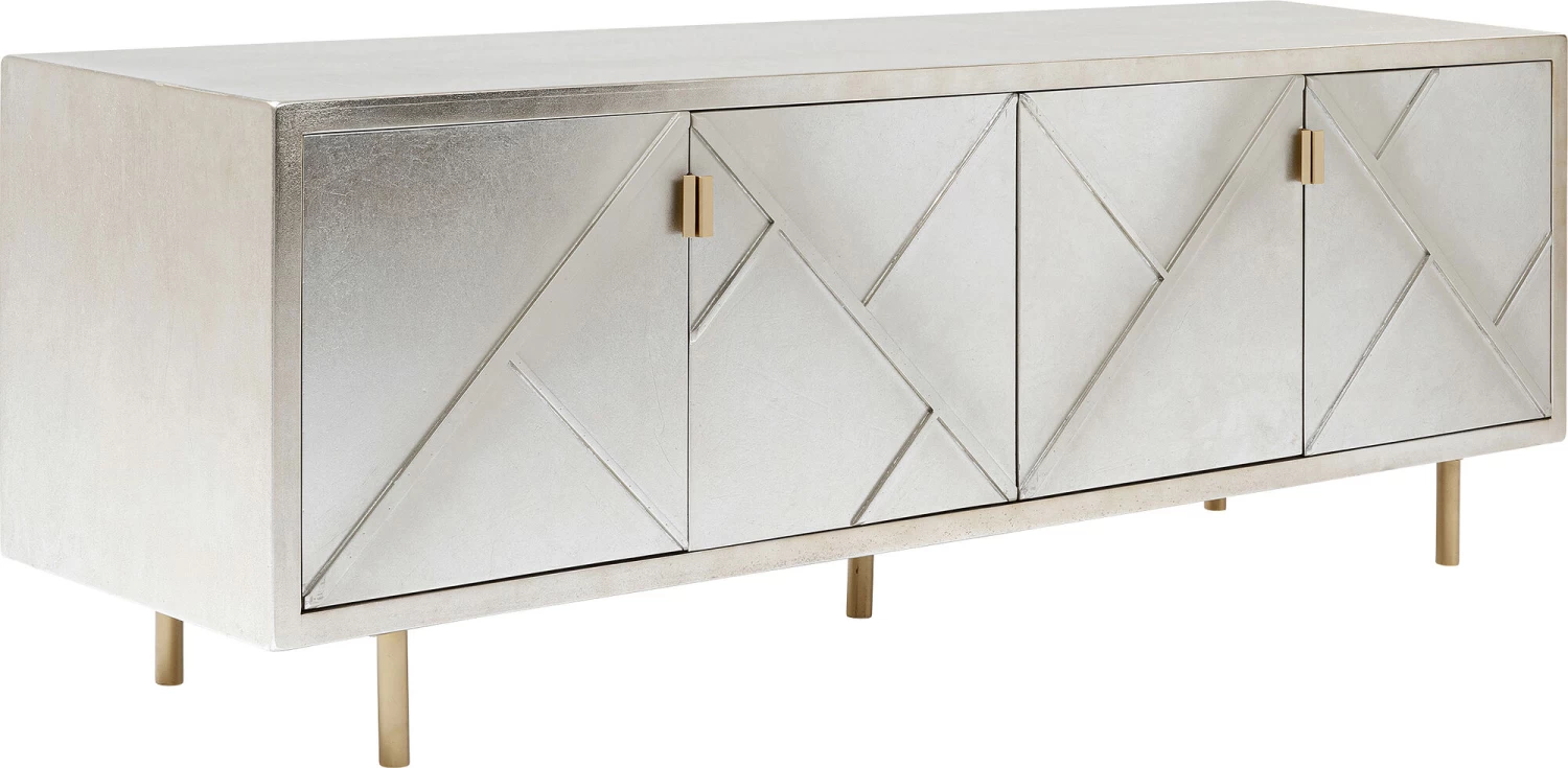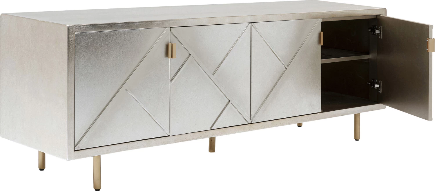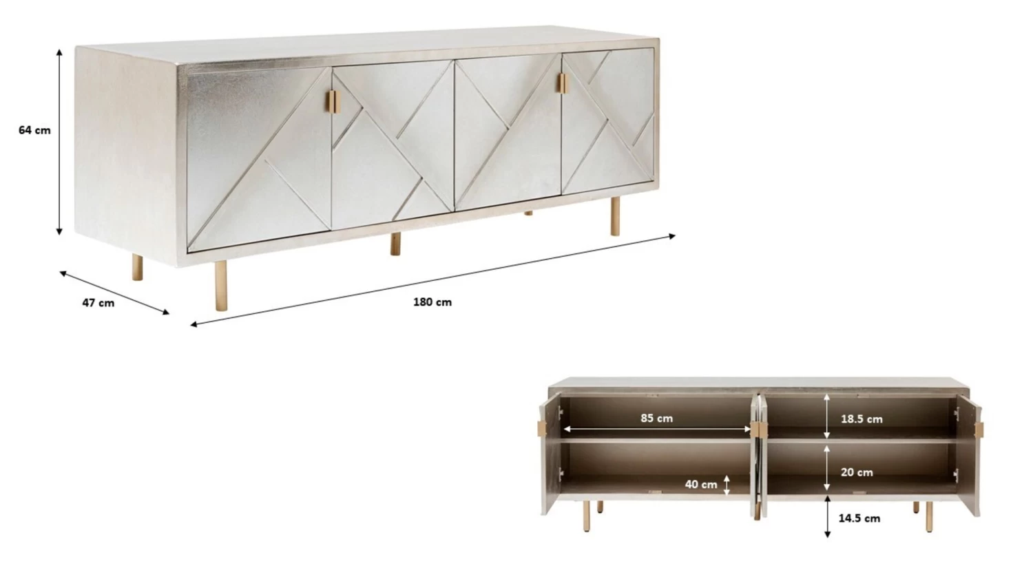 - Elegantes Sideboard in Silber und Gold mit grafischem Frontdesign, 64 x 180 x 45 Zentimeter (H/B/T)