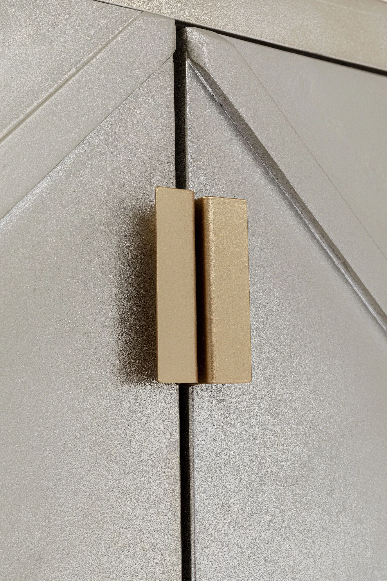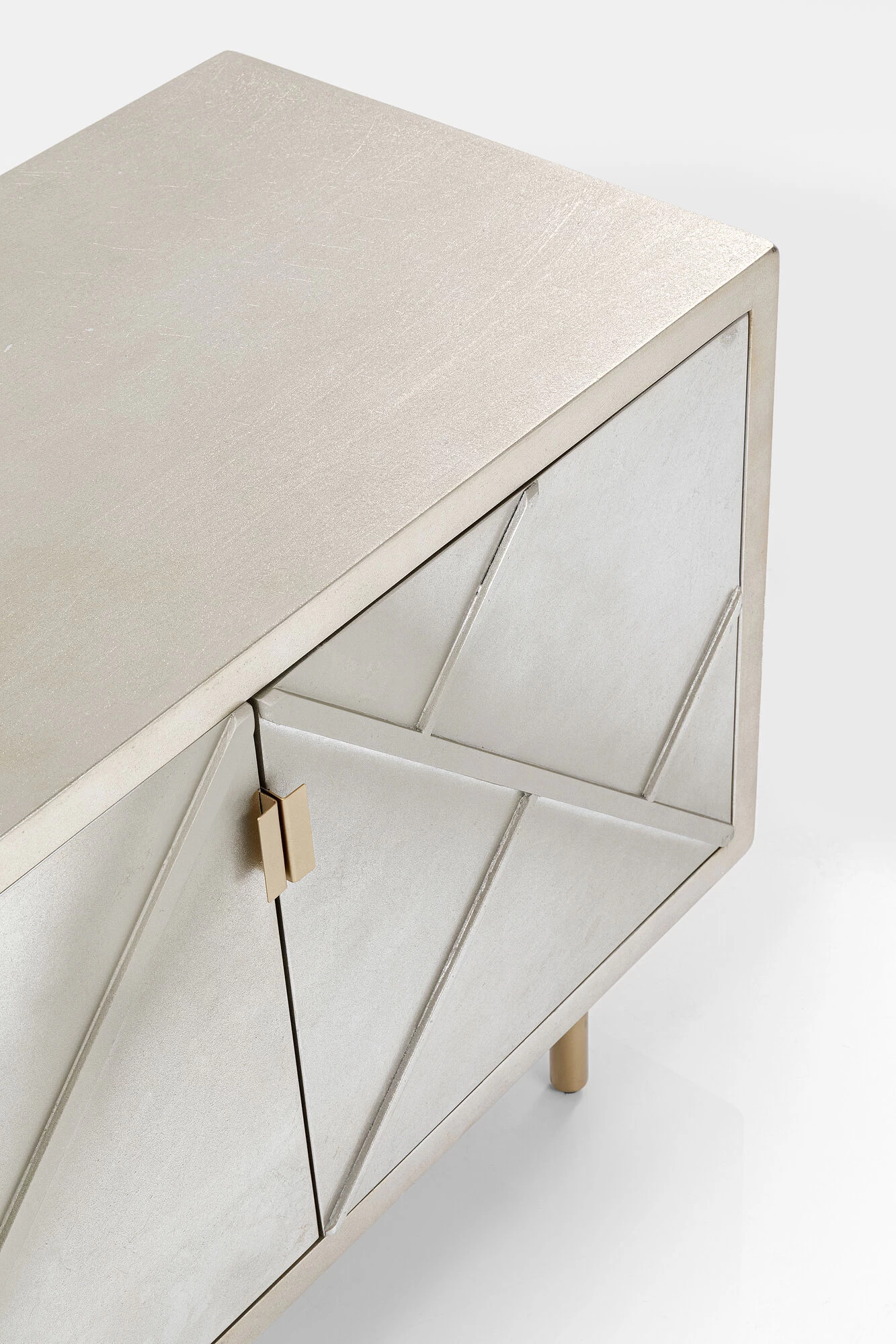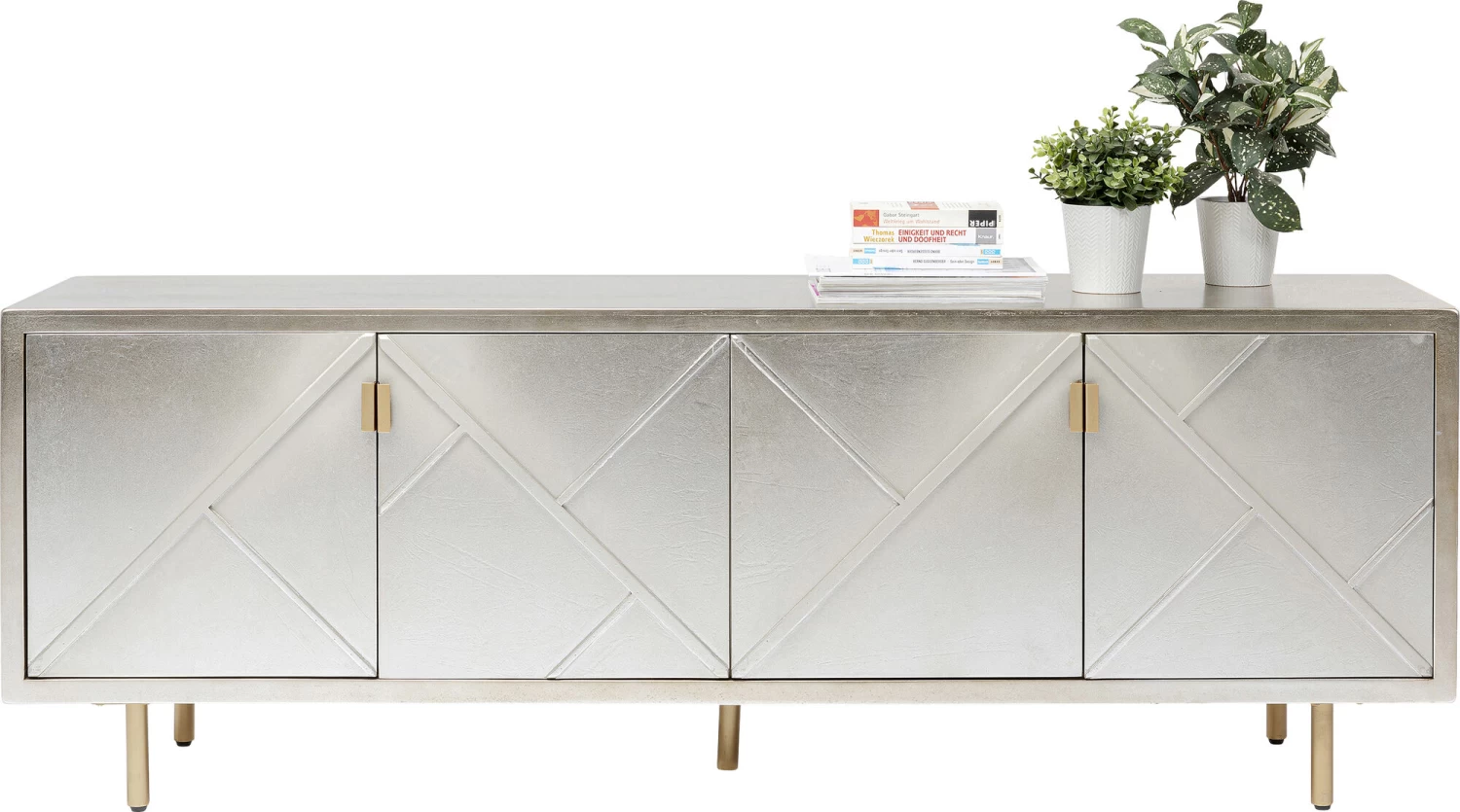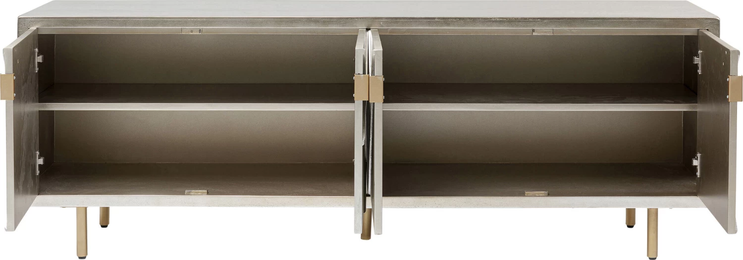- Elegantes Sideboard in Silber und Gold mit grafischem Frontdesign, 64 x 180 x 45 Zentimeter (H/B/T)
