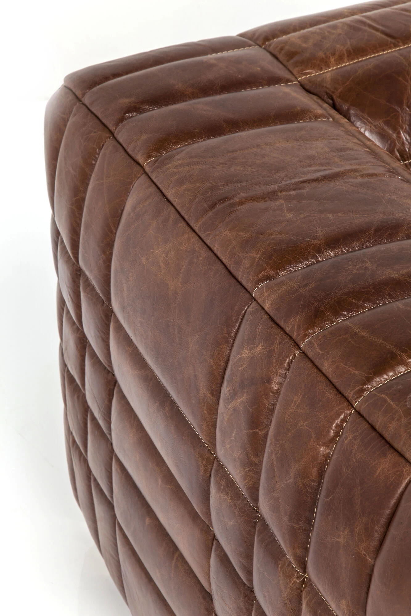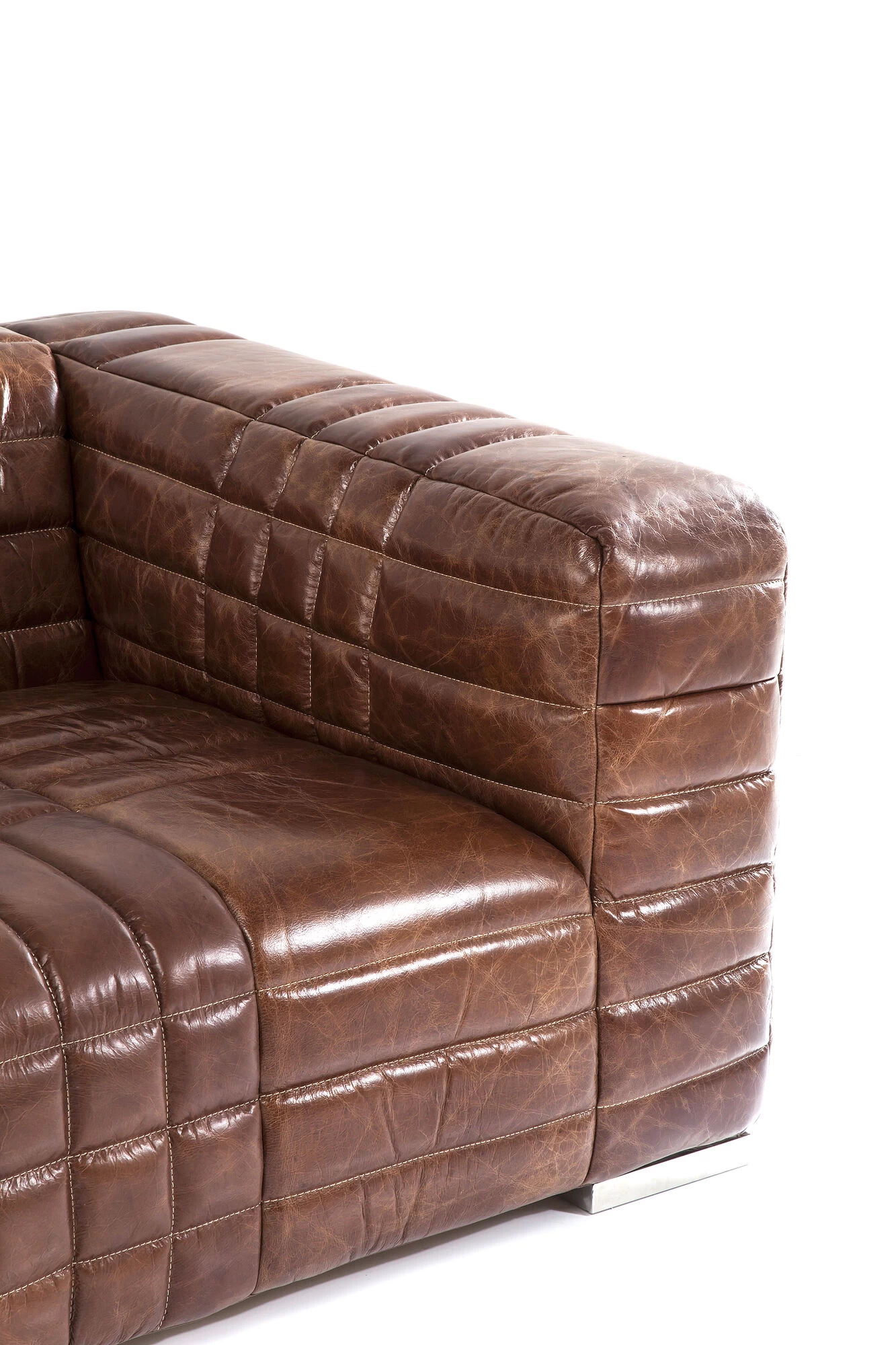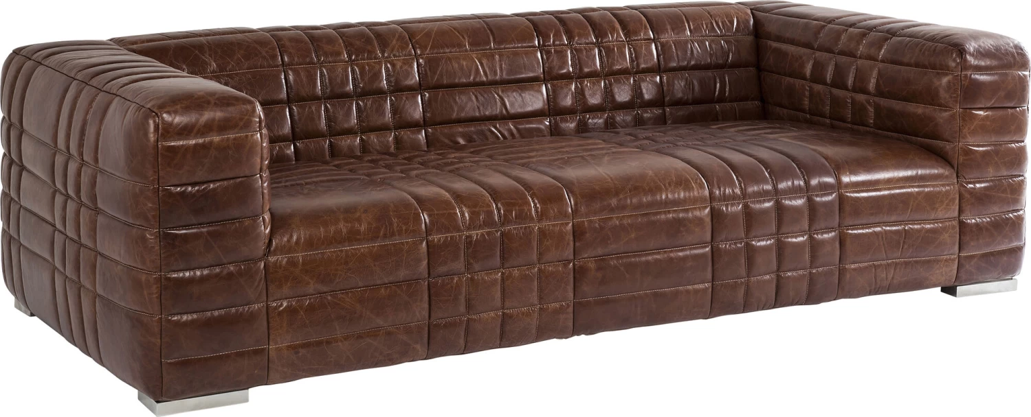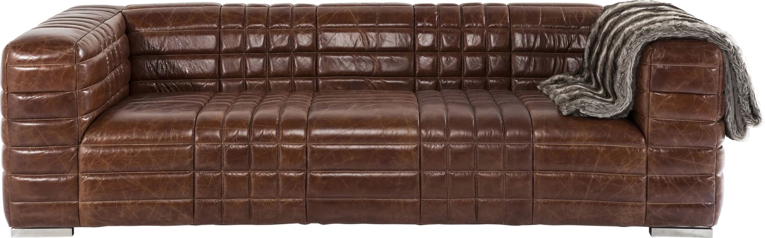 - Die klare, kubische Form der 3-er Couch wird durch eine aufwändige, lineare Steppung unterstrichen
