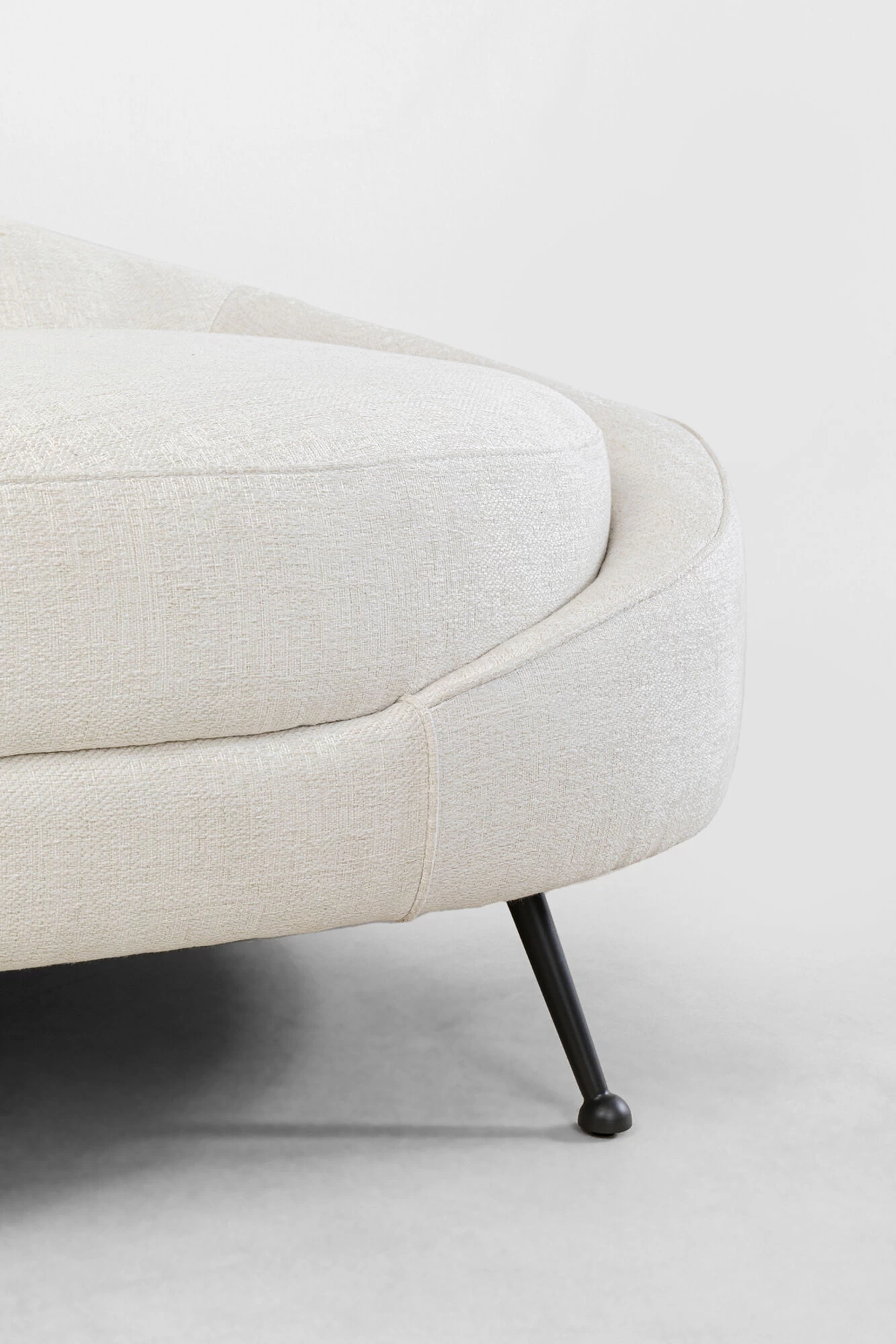 - Ein feiner, cremefarbener Webstoff unterstreicht die Eleganz dieses Sofas