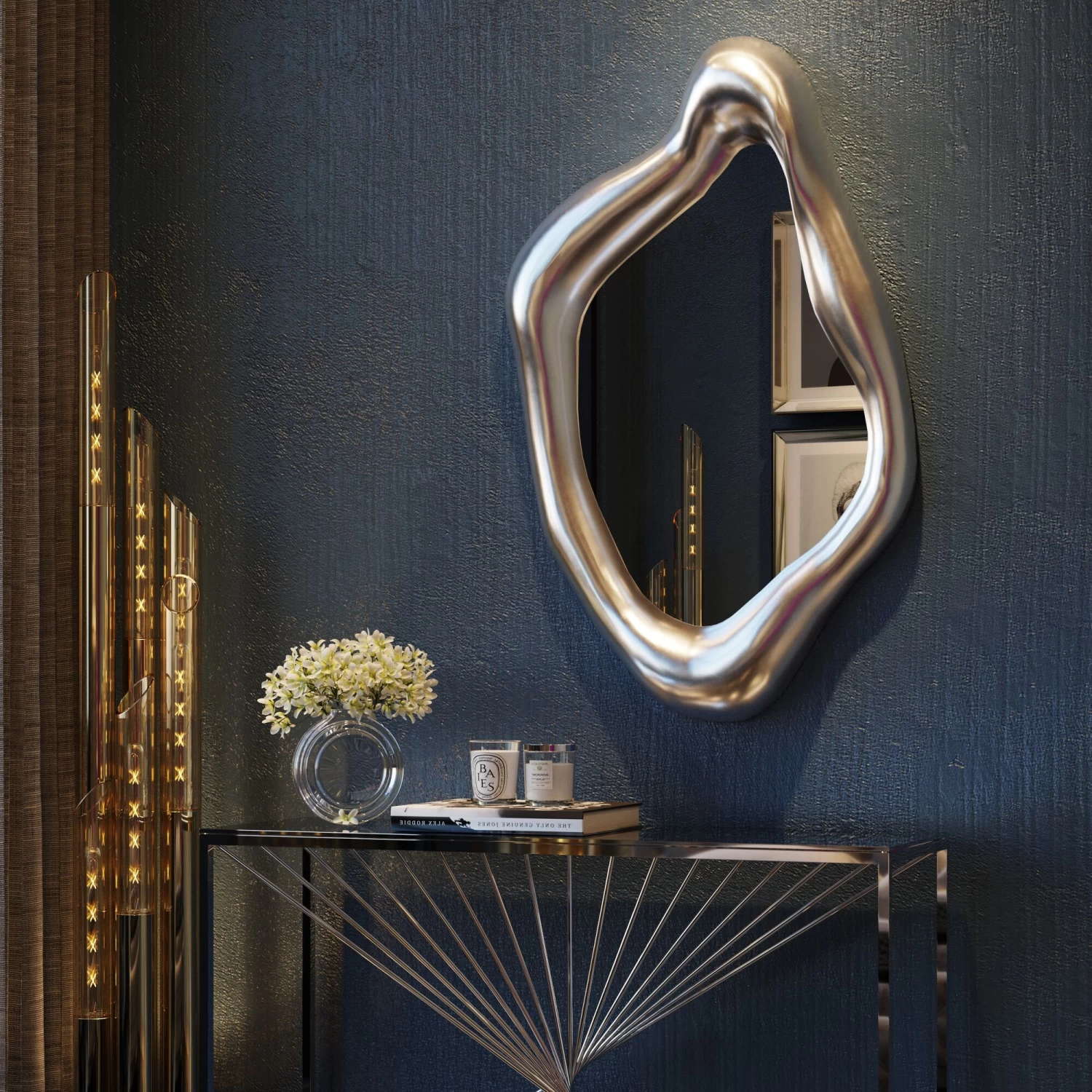 - Silberfarben gerahmter, opulenter Wandspiegel in organischer Form – ein Eyecatcher!