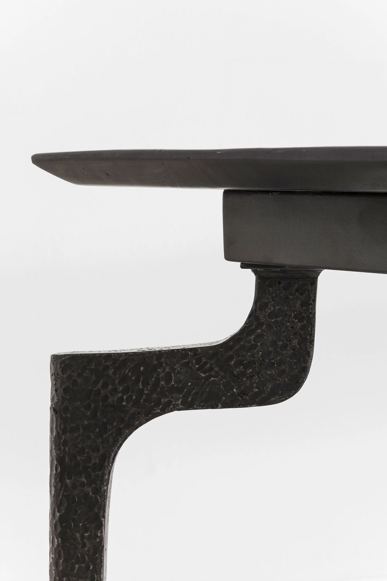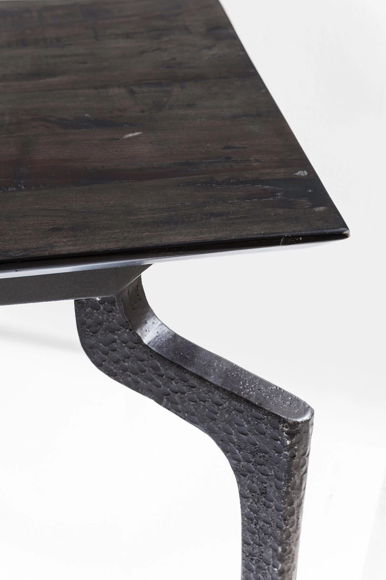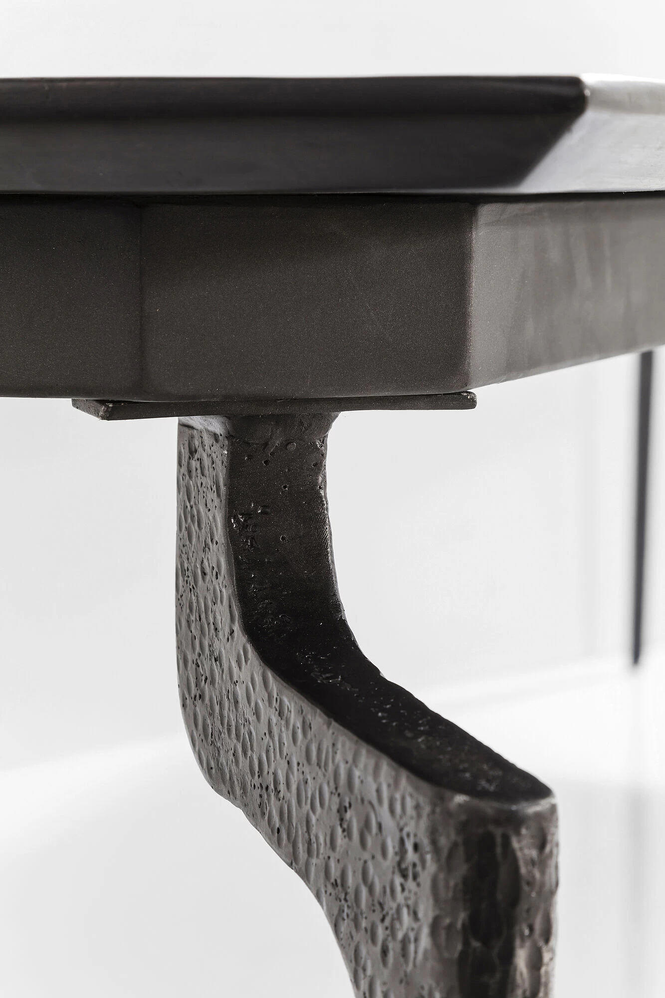 - Einzigartig: Die raffiniert geformten, gehämmerten Stahl-Beine und die schrägen Tisch-Kanten