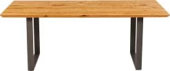 - Tischplatte aus Mango-Massivholz, Beine aus lackiertem Stahl