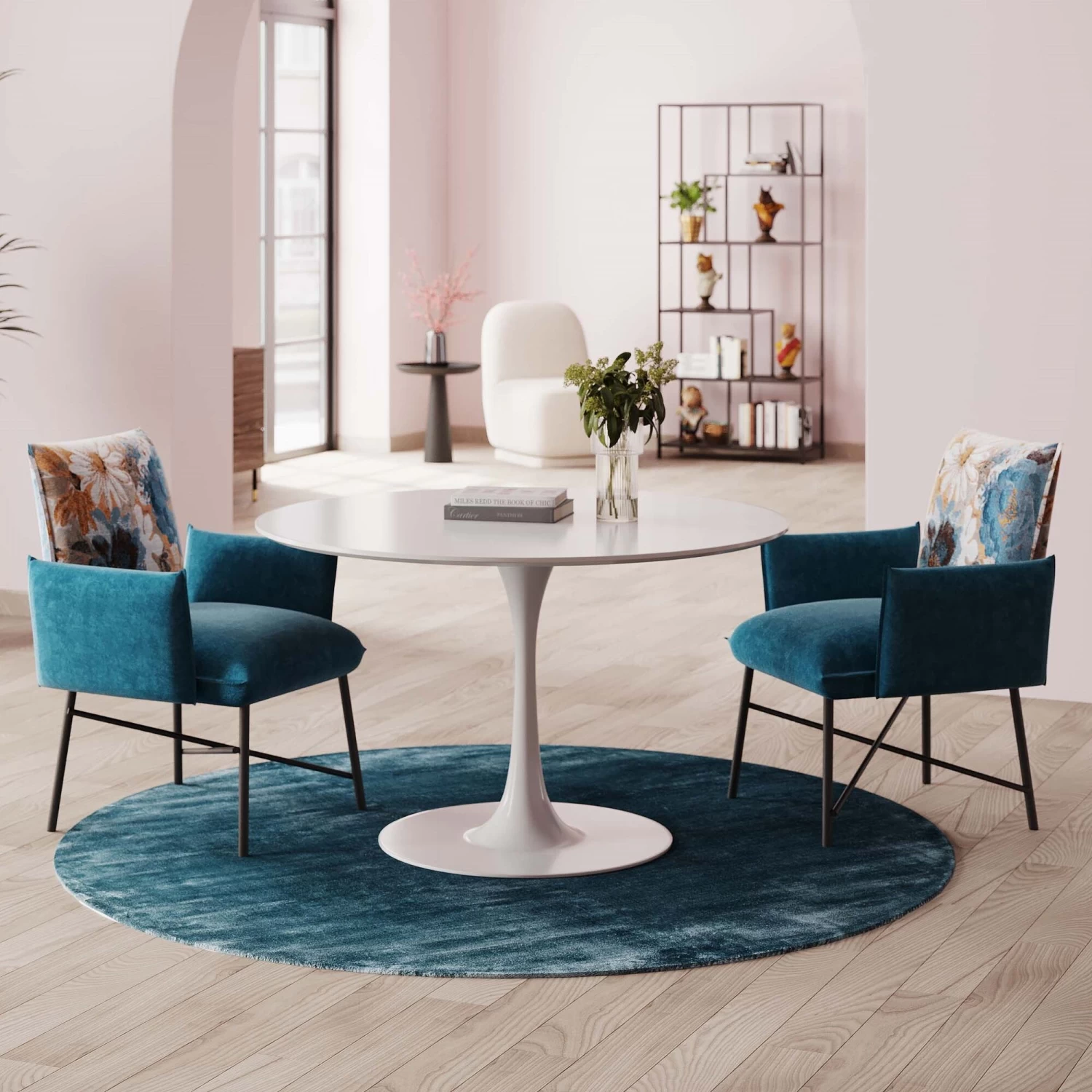 - Runde Tische sind eine großartige Lösung für kleinere Essbereiche, weil sie Platz sparen und leicht wirken – und die Harmonie fördern!
