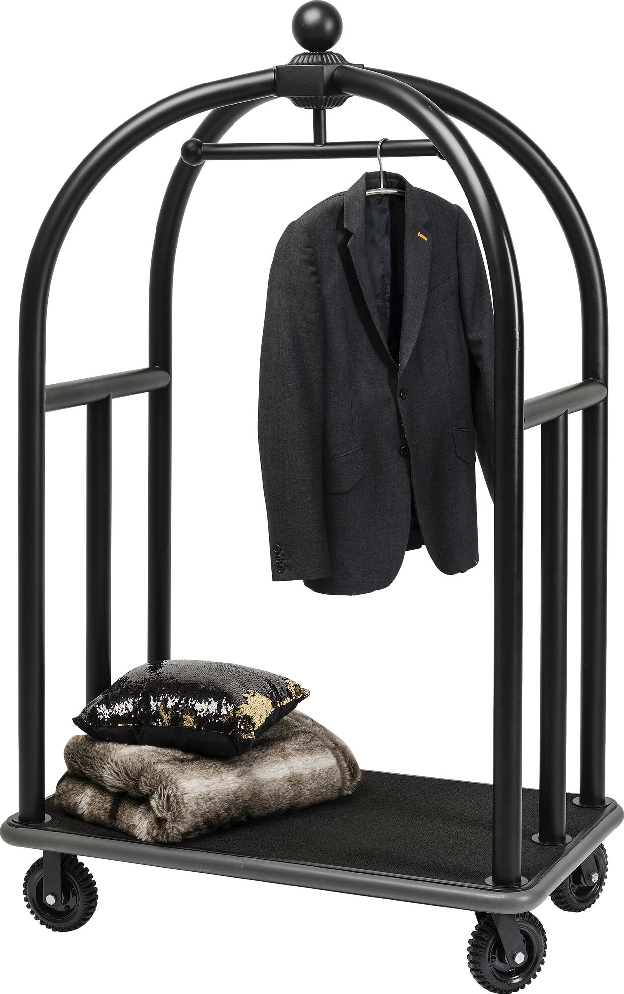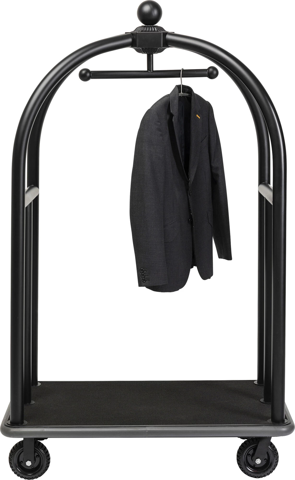 - Flexibel einsetzbar: luxuriöser, mattschwarzer Gepäckwagen auf Rollen im Grandhotel-Style