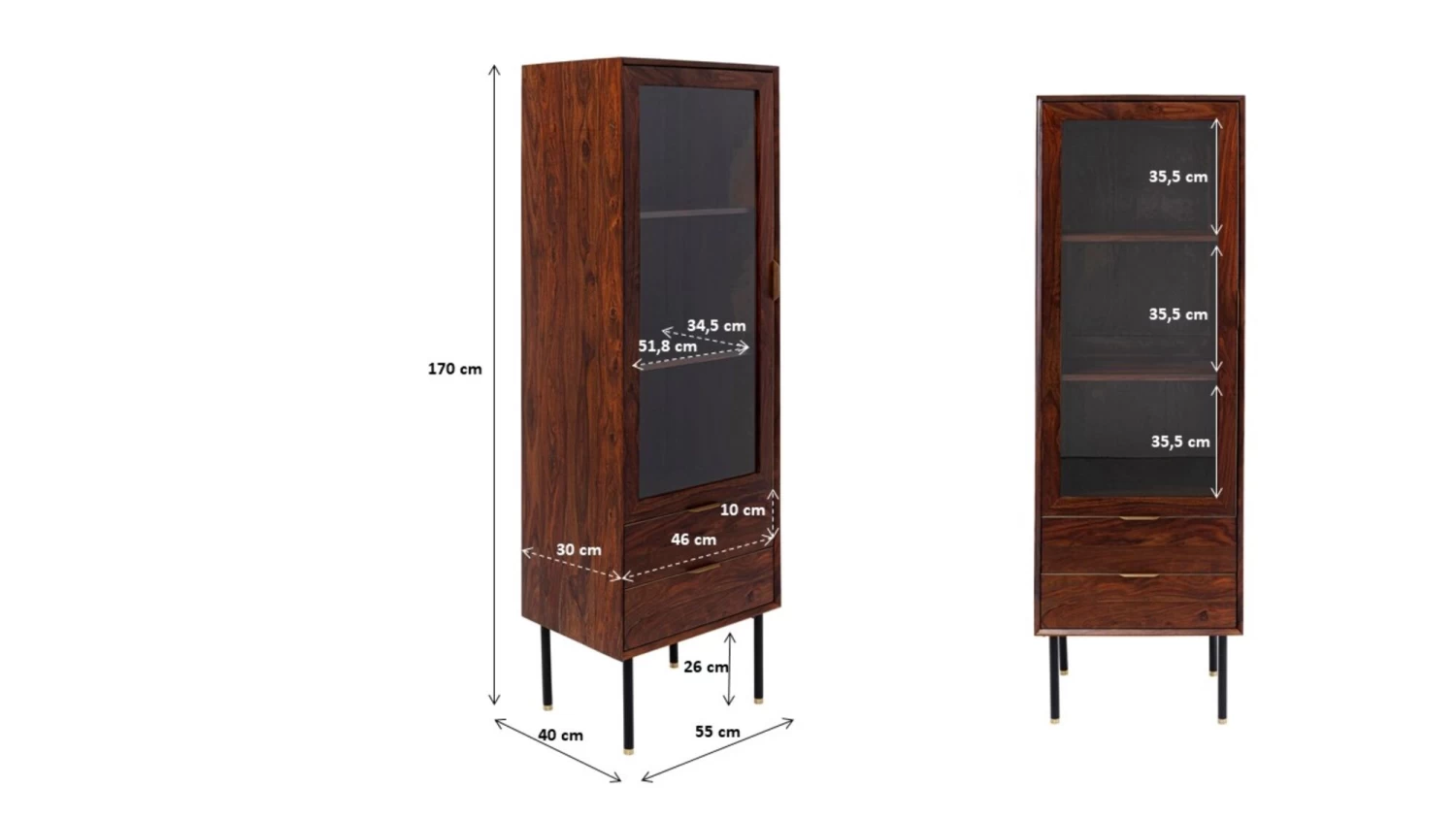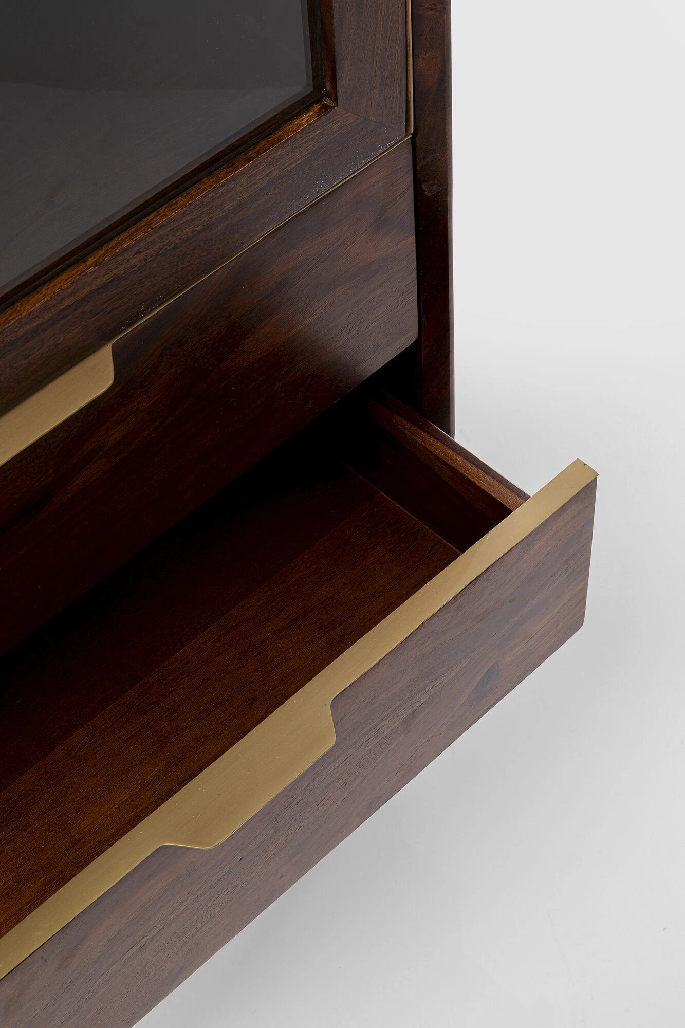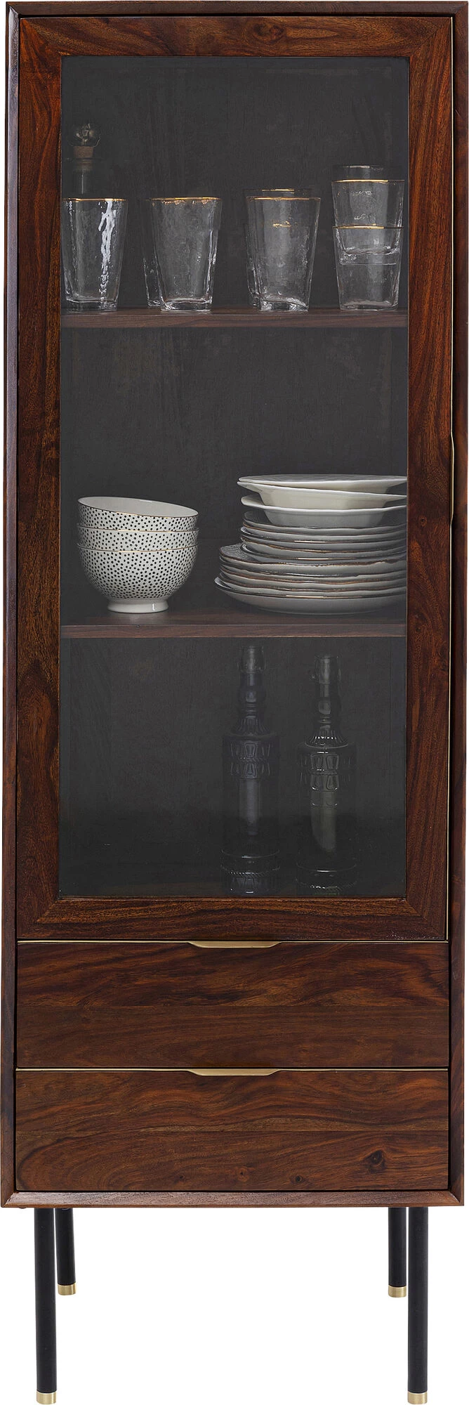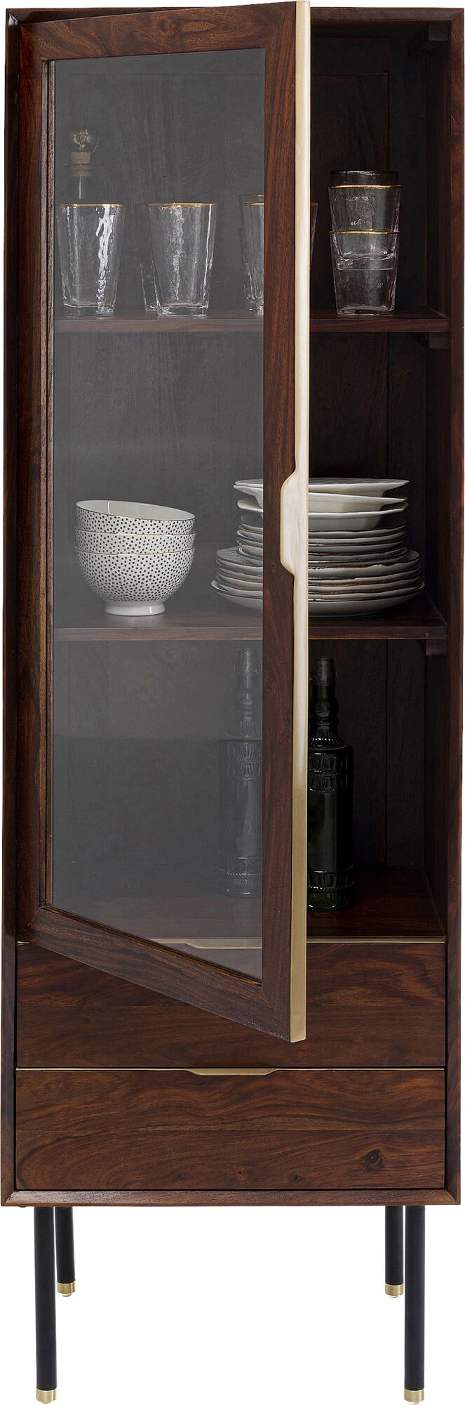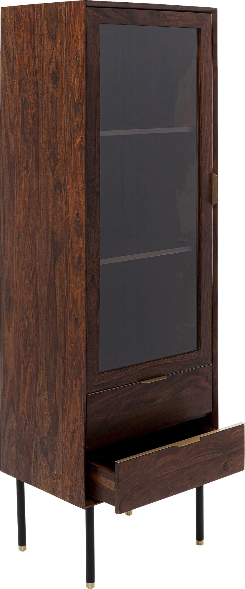 - Schmaler Vitrinen Schrank aus Echtholz mit einer großen Glastür und zwei Schubladen – ein Allrounder in der ganzen Wohnung