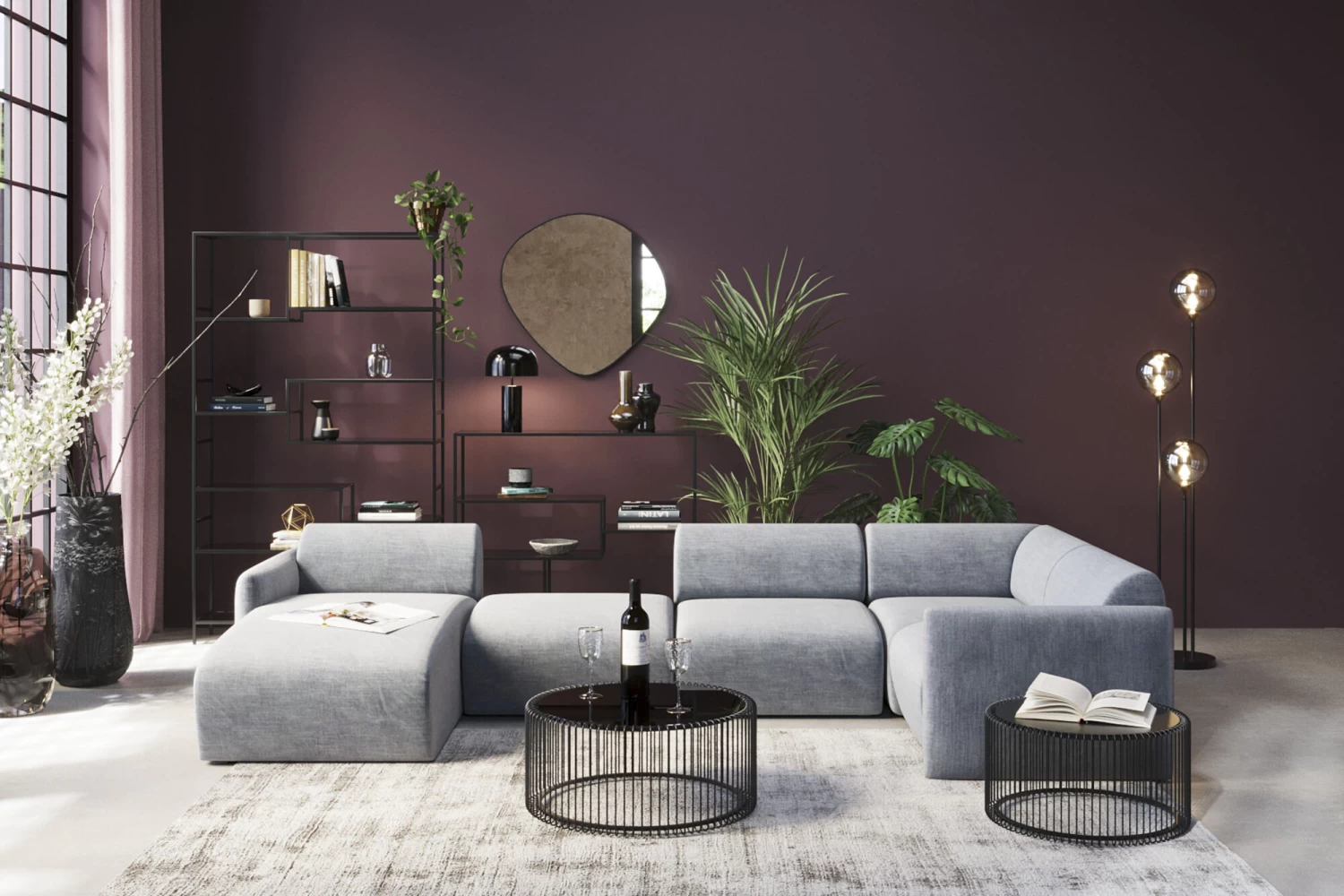 Wohnlandschaft 2 Lucca Grau Links 328cm